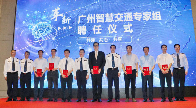 随后迎来了论坛的高潮环节——广州市公安局智慧交通特聘专家组名单公布并举行了聘任仪式,公司两大专家榜上有名,包括交通大脑研究院院长李德紘院士和智慧交通首席科学家余志教授,同时受聘的专家还包括公安部交通管理科学研究所刘东波副所长,同济大学王雪松教授,东南大学王昊教授,密西根大学终身教授、滴滴出行副总裁刘向宏博士,广州市交通规划研究院景国胜院长等交通领域世界级的专家,其中李德紘院士担任专家组组长。