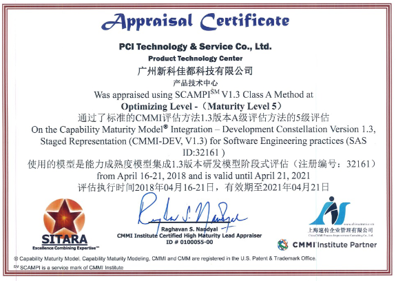 本次由SEI授权的美国主任评估师Raghav Nandyal及其带领的CMMI评估小组,对公司进行了为期8天的CMMI 5级正式评估。评估小组按照CMMI5 V1.3模型的标淮,对公司的过程运行情况进行了严格的审查,并对公司的中高层领导、EPG组以及各参评项目成员进行了访谈。评估小组在完成对应的证据确认后,一致认为公司的过程完全满足CMMI5对应的目标与实践的要求。主任评估师在今日最终发现结果的陈述会上,向我司提交了正式的评估结果报告,并将CMMI5的认证证书正式授予新科佳都副总经理张俊明。